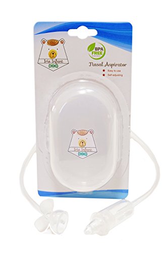 Nasal aspirator is powered by you and the nasal suction is adjustable for your baby;Snot sucker helps with infant congestion & allergy relief, perfect for colds and every day build up;Nose sucker for little noses is hygienic and easy to clean;Use as needed with infant saline spray to clear airway;Snot sucker has a convenient case for travel and ease of locating the aspirator in the diaper bag