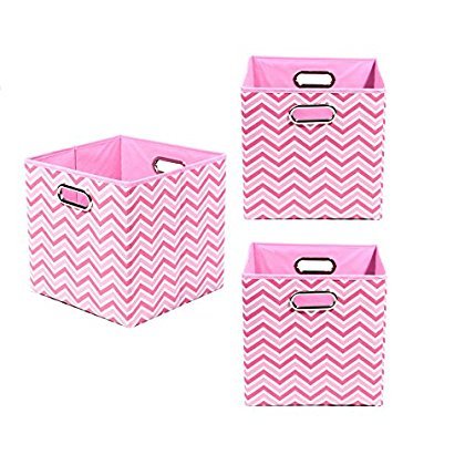 Talk about a bundle of joy. Organize in style with these 3 colorful storage bins. With its bold hue and easy-to-use design, it'll give any room a fun pop and hold all of baby's toys, blankets, clothes and more. Perfect for kids rooms, playrooms, or closets. Each bin folds flat when not in use for easy storage, and the lightweight design features metal handles for effortless carrying.