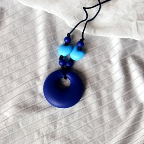 Silicone Teething Necklace - by Modern Ohana - BPA Free, Silicone Jewelry for Mom and Baby [Round Pendant] (Navy) [並行輸入品]