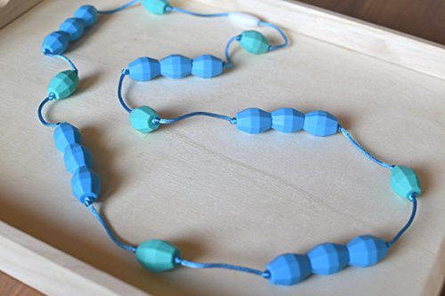 Silicone Teething Necklace - by Modern Ohana - BPA Free, Silicone Jewelry for Mom and Baby [Samba Sectioned Beads] (Sky Blue) [並行輸入品]