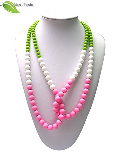High-Quality Silicone Teething Jewelry - Safe for Babies, Fun for Moms.;Food grade silicone material, BPA Free, PVC Free, Non-Toxic.;Fun shapes and texture soothe aching gums, and keep baby's attention. Comfortable length and wear for mom.;Fashionable and Modern colors and designs for the most stylish moms.;Easy to clean. Great for everyday wear. Makes for great gifts for new moms!