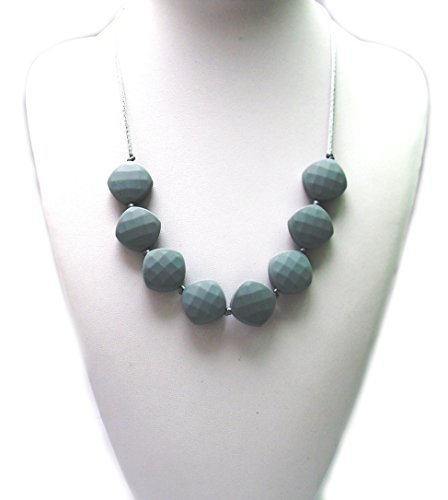 Silicone Teething Necklace - by Modern Ohana - BPA Free, Silicone Jewelry for Mom and Baby (Diamond Square Textured Beads) (Dim Gray)