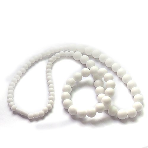 Silicone Teething Necklace - by Modern Ohana - BPA Free, Silicone Jewelry for Mom and Baby (Round Beads Necklace and Bracelet Set) (White/Snow)