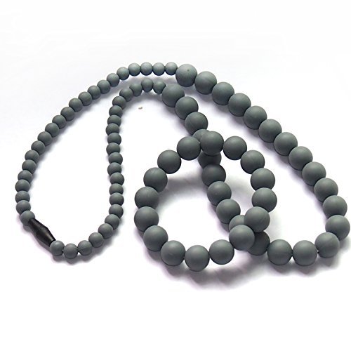 Silicone Teething Necklace - by Modern Ohana - BPA Free, Silicone Jewelry for Mom and Baby [Round Beads Necklace and Bracelet Set] (Dim Gray)