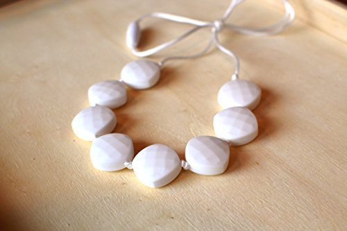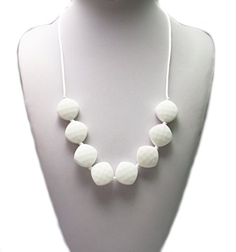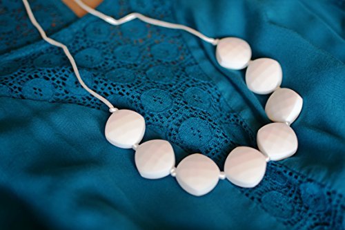 Silicone Teething Necklace - by Modern Ohana - BPA Free, Silicone Jewelry for Mom and Baby [Diamond Square Textured Beads] (Snow White) [並行輸入品]