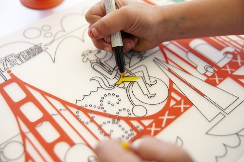 Reusable coloring placemat made from FDA-approved, food-grade silicone that helps provides fun at mealtime at home or on the go;Features a playful, silk-screened design by an independent artist that a child can color with dry-erase or washable markers (sold separately);Easily cleans after use by wiping down with soap and water; dishwasher safe;Placemat's high-quality silicone is free of BPA, PVC, lead, latex, and phthalates;Mark mat measures 16 x 12 inches (LxW)