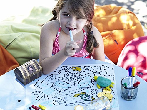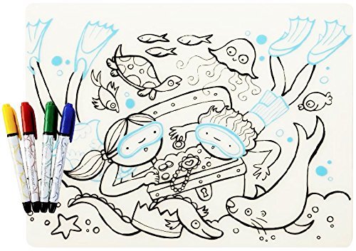 modern-twist Kids mark-matシリコンカラーリングプレースマットwith 8ホワイトボードマーカーマーカー、Treasure Chest