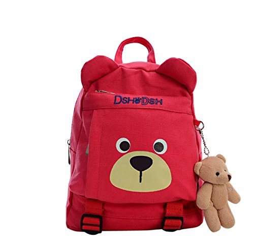 Moka Club 子供 用 リュック サック クマ 熊 柄 キーホルダー 付き 通園 遠足 キャンプ キッズ 幼児 園児 (赤(レッド))