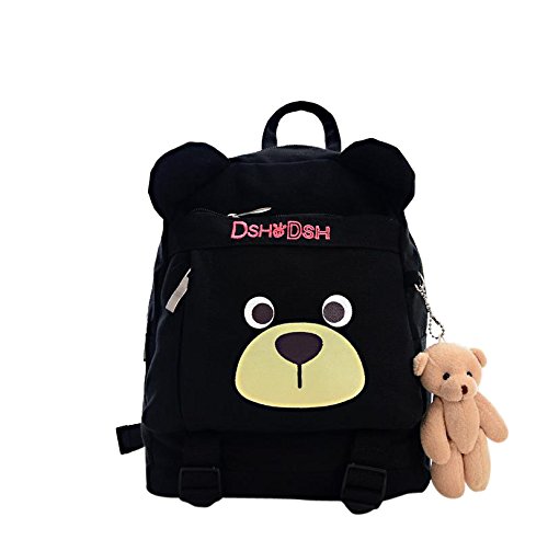 Moka Club 子供 用 リュック サック クマ 熊 柄 キーホルダー 付き 通園 遠足 キャンプ キッズ 幼児 園児 (黒(ブラック))
