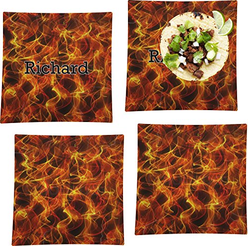 火のセット4 – Square Dinner Plates ( Personalized )