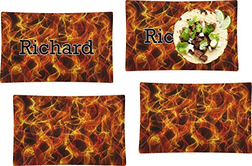 火のセット4長方形ディナープレートPersonalized )