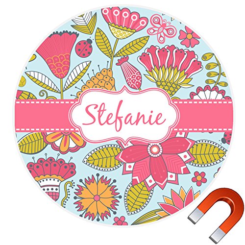 Wild Flowersラウンドカーマグネット( Personalized ) 9" x 9" ブルー cp-rnd-mgnt-9+200508