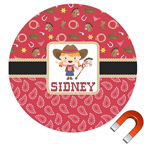 レッドWesternラウンドカーマグネット( Personalized ) 9" x 9" レッド cp-rnd-mgnt-9+43150