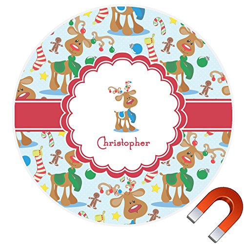 トナカイラウンドカーマグネット( Personalized ) 9" x 9" ブラウン cp-rnd-mgnt-9+204296