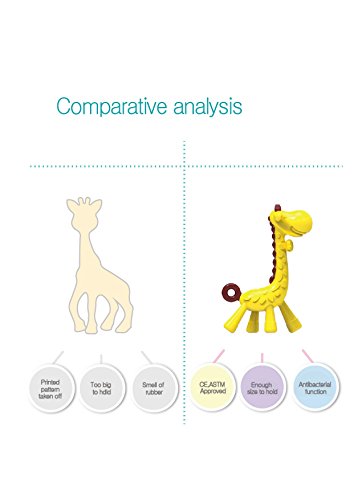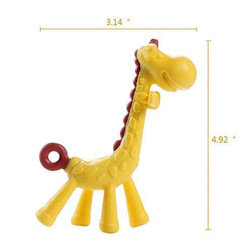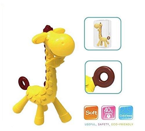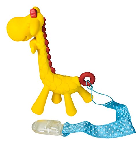 Sally the Giraffe Teether is a cute, colorfully designed teether to help strengthen the development of every child. Giraffe teether is fun, safe, and non-toxic.;Made with quality materials, It can be sterilized with no worry of paint peeling;Bumps on the body help with stimulating the oral cavity as it soothes the teething discomfort as well as touch development;Special design which prevents baby from pushing the teether too deep into baby's mouth and loop at the back of the teether allows it to be attached to a pacifier clip for easy travel;Made from Natural Rubber and Food Paint. Safe non-toxic TPR Material and Latex free
