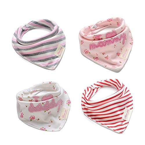 Trendy & Stylish, Soft & Safety,;Unique baby gift set,;Machine Washable at 30 Degrees and Tumble Dry Friendly,;2 nickel-free snaps provide different sizing as baby grows. Recommended ages: 0 to 12 months. Bibs stay in place and your baby won't be able to pull them off!;Front is 100% soft organic cotton / Back is polyester fleece for absorbency. Protect & keep your drooly/teething baby dry from all dribble and spit ups. No more wet clothes!
