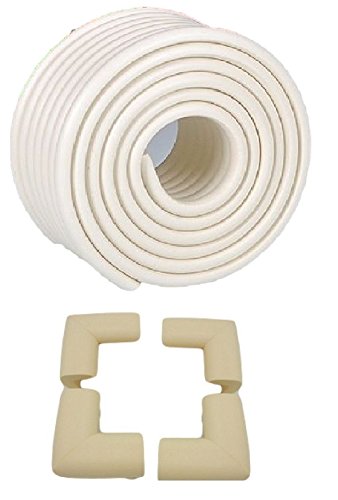 【MomMomLi】赤ちゃんを突起物からガード 『コーナー クッション パッド』肉厚《幅8㎝×長さ2M》テーブル 家具 柱の角 出っ張りの危険防止!子供のケガ対策 養生 (ロール1巻+角専用パッド×4ケ, ベージュ)