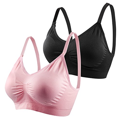 Momcozy(モンコジー) 授乳用ブラジャー マタニティ 2Wayオープンブラジャー 妊婦産後 矯正下着 スポーツブラジャーとしても使用可能 ノンワイヤー ブラジャー 授乳対応 前開き (M, ブラック+ピンク)