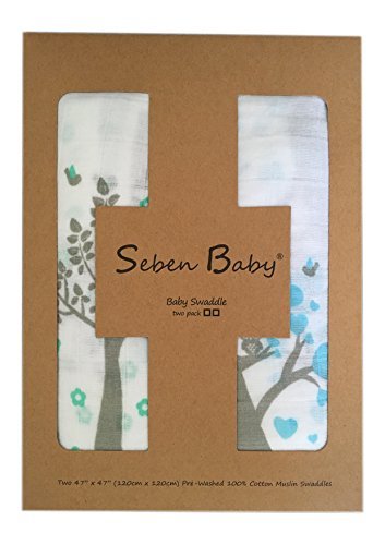 Muslin Swaddle Blankets - 47 inch x 47 inch Large Softest Muslin Swaddles - Half Price for Promotion - Tree Bird and Owl - Unisex for Boys or Girls - Lifetime Guarantee by Seben Baby