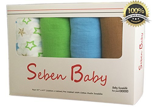 SPECIAL SALE - Muslin Swaddle Blankets - 100% Cotton - Seben Baby Swaddle Blanket - 47 inch x 47 inch Large Softest Muslin Receiving Blankets - Unisex for Boys or Girls