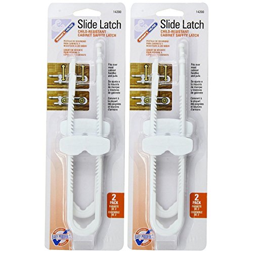 Child-resistant lock helps keep cabinets secure;Fits over most cabinet handles and knobs;Spring action quick release slide;Quick and easy installation;2 Packs Of 2 Count = 4 Count