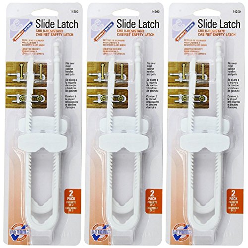 Child-resistant lock helps keep cabinets secure;Fits over most cabinet handles and knobs;Spring action quick release slide;Quick and easy installation;3 Packs Of 2 Count = 6 Count