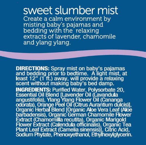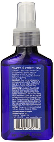 Mommys Bliss Sweet Slumber Mist creates a calm and familiar bedroom environment that relaxes baby for a good nights sleep. Calming Bedroom Mist is enriched with the soothing extracts of lavender, chamomile and ylang ylang that are historically associated with relaxation and sleep.