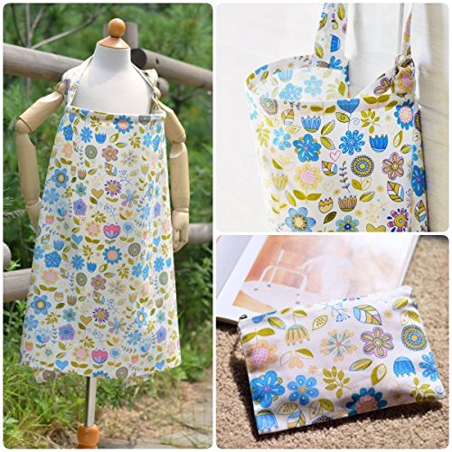 Mona bebe(モナベベ) ワイヤー入り授乳ケープ(ナーシングカバー) 大きめサイズ 多機能 収納ポーチ付き プレゼントにも大人気☆ブルーフラワーズ [並行輸入品]