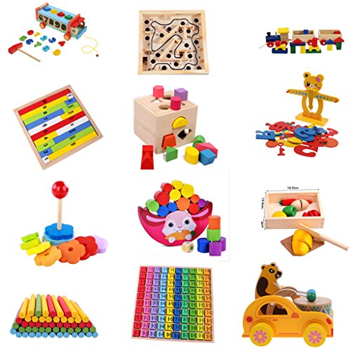 monkeyjack Kids木製デジタルブロック数学的学習赤ちゃん教育パズル玩具