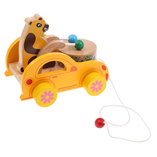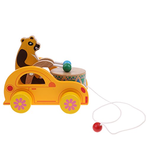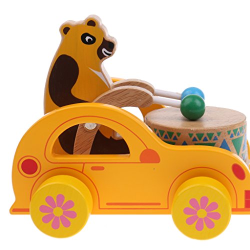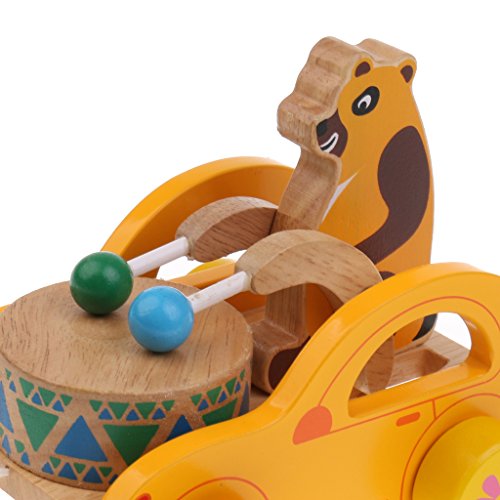 monkeyjack Funny Baby Kids Walk Starting Developmental木製漫画車ドラムサウンドウォーカーToys