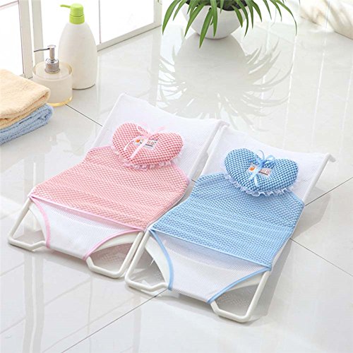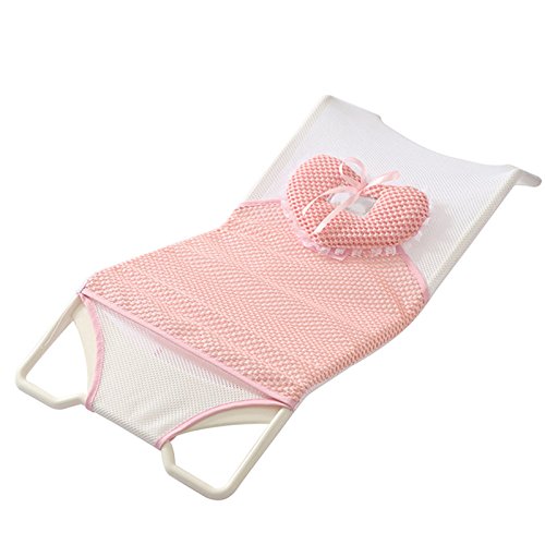 Moobom ベビーバスネット 幼児 赤ちゃん 調整可能 お風呂 席 ネット 入浴シート メッシュ 全2色 可愛い ハート枕つき (ピンク)