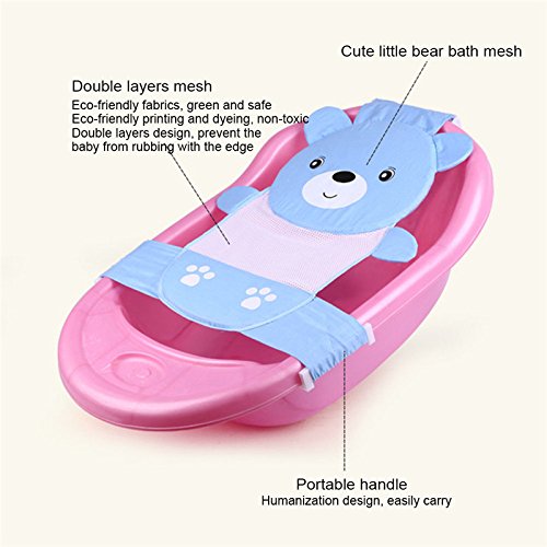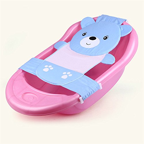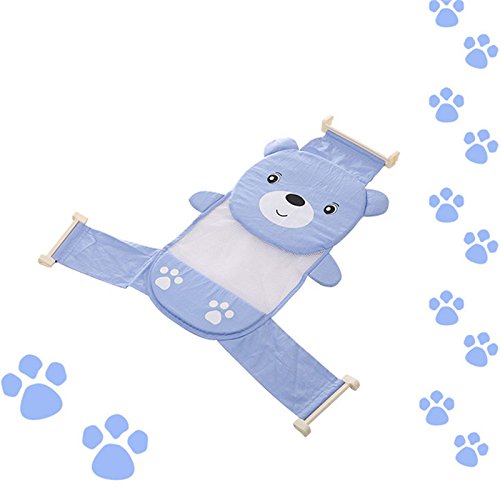 Moobom ベビーバスネット 幼児 赤ちゃん 調整可能 お風呂 席 ネット 入浴シート メッシュ 全2色 くま模様 熊形 (ブルー)