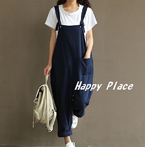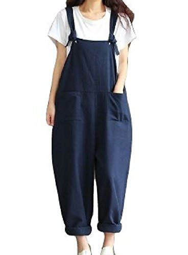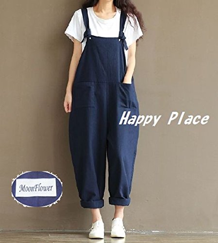 [MoonFlower (ムーンフラワー)] レディース サロペット ゆったり マタニティ オーバーオール 綿麻サロペット コットン リネン カジュアル 大きいサイズ (L, ブルー)