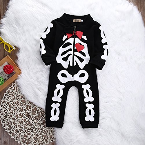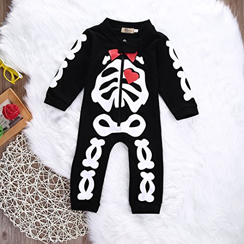 新生児乳児赤ちゃん男の子女の子暖かいTie +スカルロンパースジャンプスーツ服装服 カラー: ホワイト
