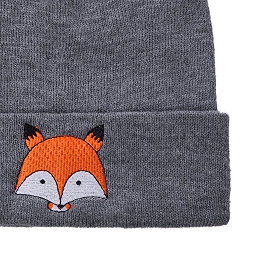 子供の帽子 秋冬 おしゃれ キツネ ニット 女の子 男の子 編み物 赤ちゃん 可愛い ぼうし 綿 周り51-60cm 無地 (ダークグレー)