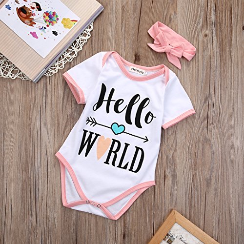 クリアランス新生児赤ちゃん女の子服Hello World Romperキューピッドの矢印ボディスーツ+ Headwear カラー: ホワイト