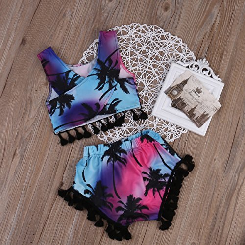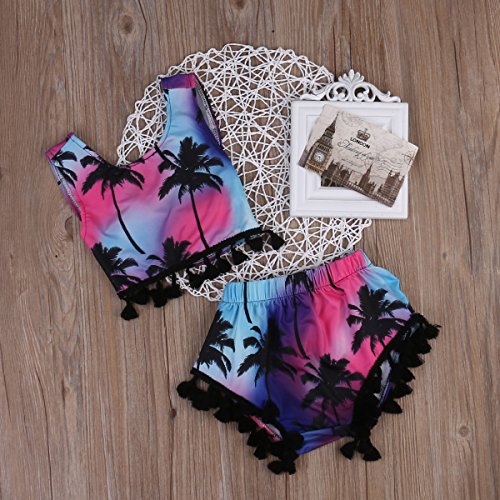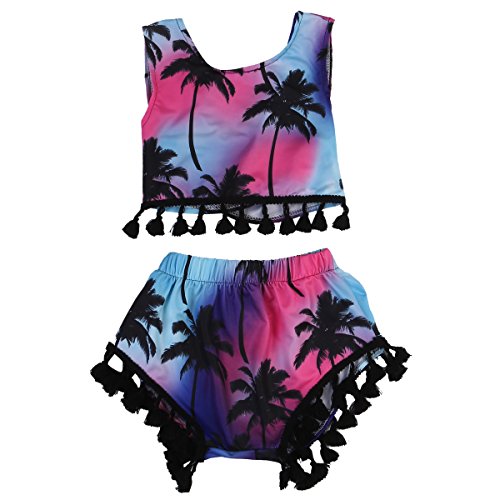 赤ちゃん女の子クロスタッセルBeachwear Coconut Palm印刷ノースリーブ花柄スーツセット服装 12~18 Months マルチカラー