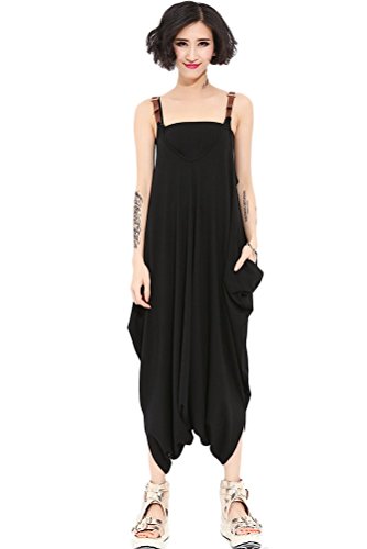 (モダンミス)Mordenmiss カジュアルオーバーオール レディース ゆったり ワイドパンツ サロペット オールインワン ブラック6