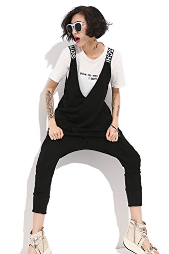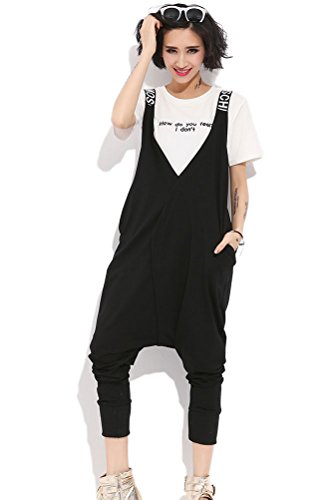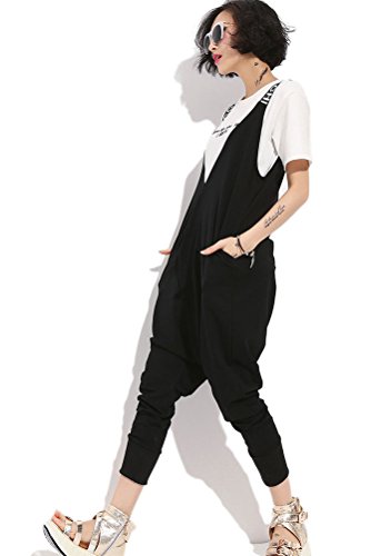 (モダンミス)Mordenmiss カジュアルオーバーオール レディース ゆったり ワイドパンツ サロペット オールインワン ブラック8