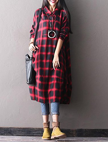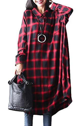 mordenmissレディース新しいポロ襟ブラウスフロントボタンClothing カラー: レッド