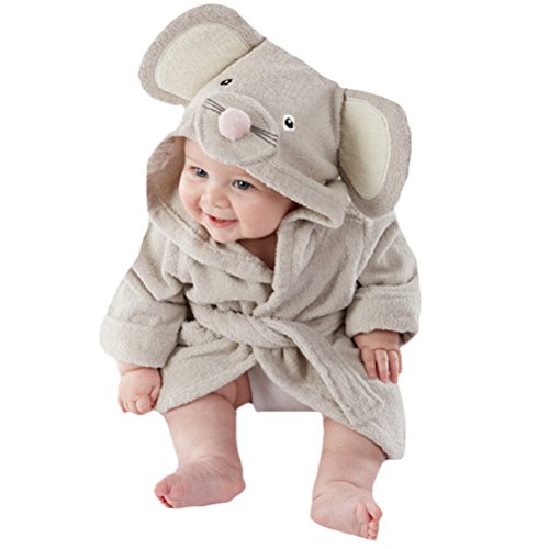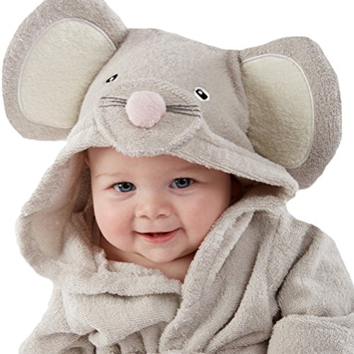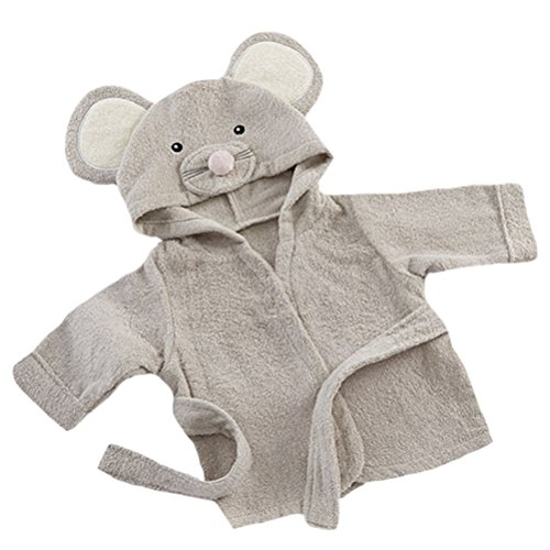 (モダンミス)Mordenmiss ベビー&キッズ用 アニマル タオル おくるみ 可愛いバスローブ ポンチョ 出産祝い贈り物にも ローブ ネズミちゃん グレー