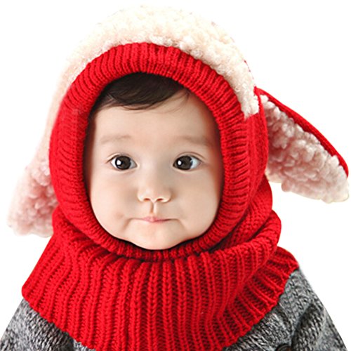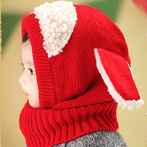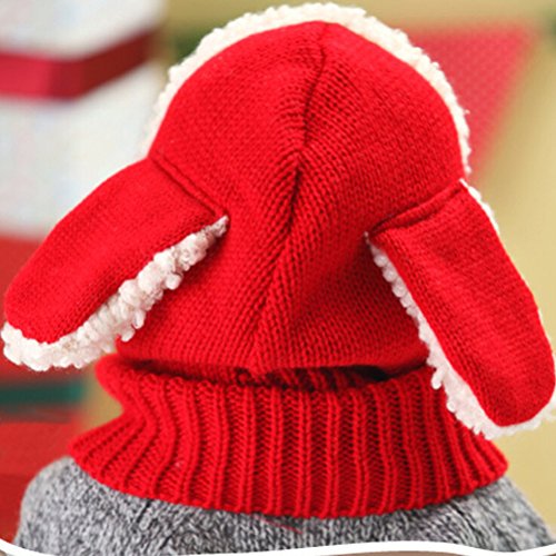 (モダンミス)Mordenmiss うさぎちゃん風 ニット帽 ベビー&キッズ用 防寒 選べる5色 レッド