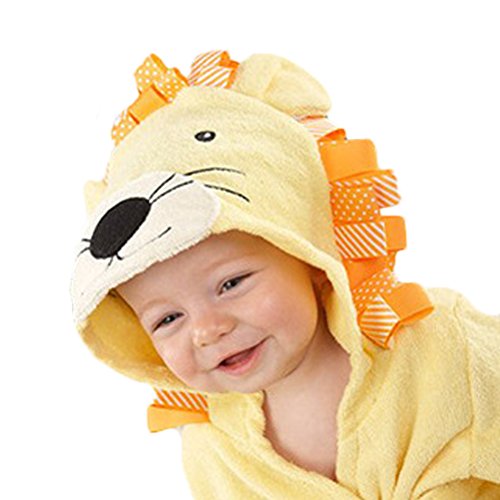 (モダンミス)Mordenmiss ベビー&キッズ用 アニマル タオル おくるみ 可愛いバスローブ ポンチョ 出産祝い贈り物にも ローブ ライオンさん イエロー