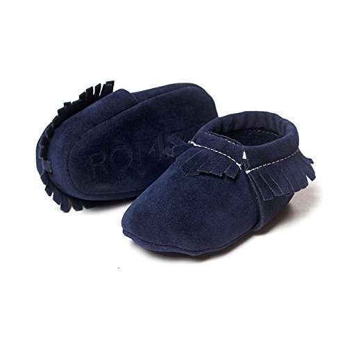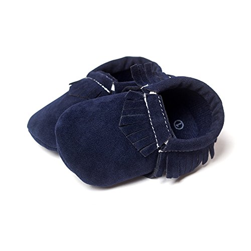 Morninggold 歩行練習シューズ ベビーシューズ 幼児シューズ 新生児靴 滑り止め 柔らか 出産お祝い フリンジと蝶リボン飾り 女の子 赤ちゃん靴 ソフトソールシューズ ルームシューズベビー (13cm, 紺)