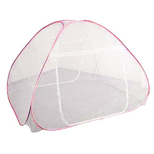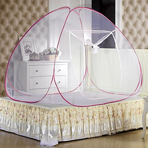 Mos X ワンタッチ蚊帳 折りたたみ式 シングルドア 底つき セミダブル ダブル キング (レッド)