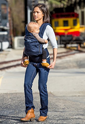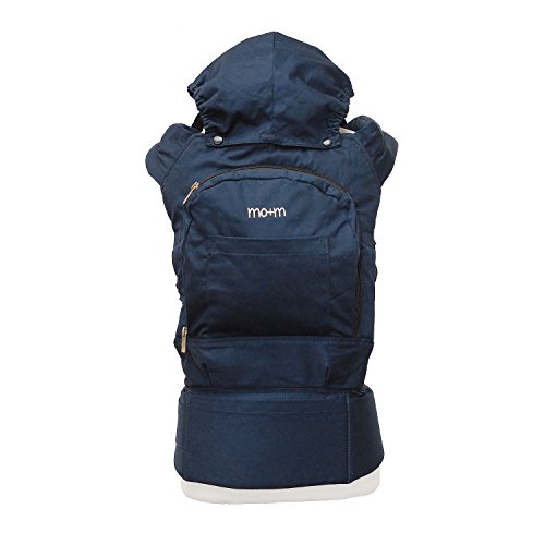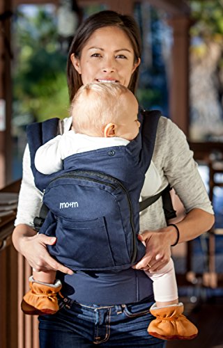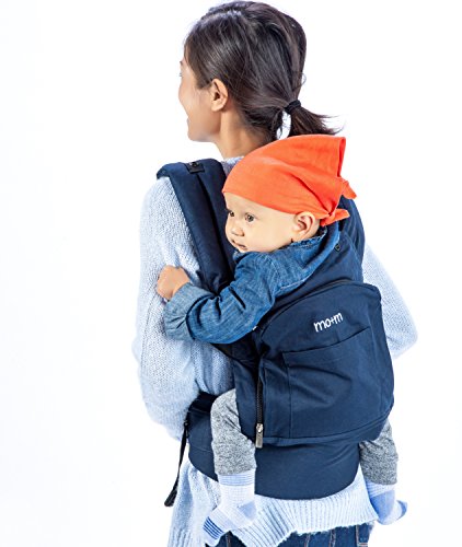 Mo+m Classic Cotton 3 Position Baby Carrier (Solid Navy Blue) - Soft Structured, Ergonomic Sling w/ Mesh Cooling Vent, Hood & Pockets