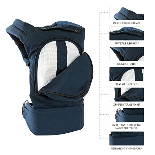 ERGONOMIC & EASY - This baby carrier distributes weight evenly so it won't put stress on your back or shoulders. No folding or tying necessary. Just load your baby and enjoy hands-free parenting for hours.;SO COMFY YOUR BABY WILL SLEEP IN IT: Vented window keeps your baby cool, ultra soft hood shades the head while sleeping.;VERSATILE 3-IN-1 DESIGN: Carry in front, backpack or hip carry positions. Makes an excellent baby shower gift, mothers day gift or gift for new moms. So put it on your baby registry!;YOUR BABY IS SAFE: ASTM F2236 - 14 Certified, CPSIA Sec.101 & Cal. Prop 65 Passed.;SUPER CONVENIENT: Our baby sling has pockets for storage, machine washable and compact; fits in a diaper bag.