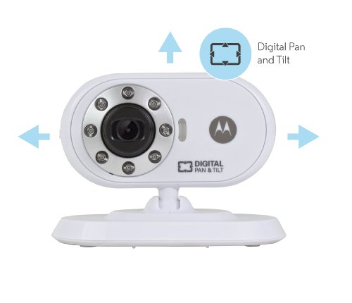 Digital video baby monitor with 2.4-inch color LCD screen on parent unit;Parent unit features a touch less thermometer for baby and liquids - hold thermometer 1/2-inch from baby or liquid for accurate reading;Monitor features 2-way communication as well as digital pan and tilt;Infrared night vision for use in a darkened nursery;Up to 520-foot range with out-of-range alert