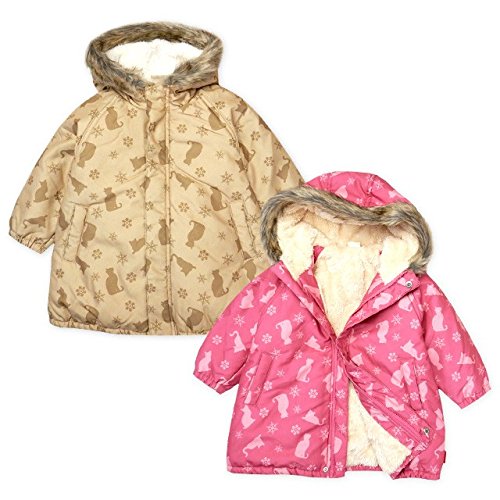 (ベージュ/95cm)ベビー服 女の子 アウター フルジップ コート Moujonjon ムージョンジョン 中綿 裏ボア ポリピーチ ネコ柄 ファー 女児 ベビー