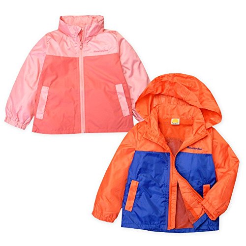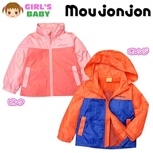 (オレンジ/95cm)ベビー服 女の子 アウター ジャケット Moujonjon ムージョンジョン 裏メッシュ 収納式フード 配色切替 刺繍 女児 ベビー